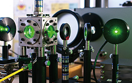4年生は研究室に配属され最先端技術を研究し、卒業論文を作成します。写真はレーザ着火の研究の一コマです。レーザ着火をエンジンのスパークプラグと代えることで熱効率アップを目指しています。他に、「都市型風力発電システム」、「パルス管冷凍機」、「鉄道の独立回転台車」、「感性工学による音楽情報伝達」、「自律移動ロボット」、「ヴァイオリンとチェロの振動解析」など最先端の研究に取り組むことができます。