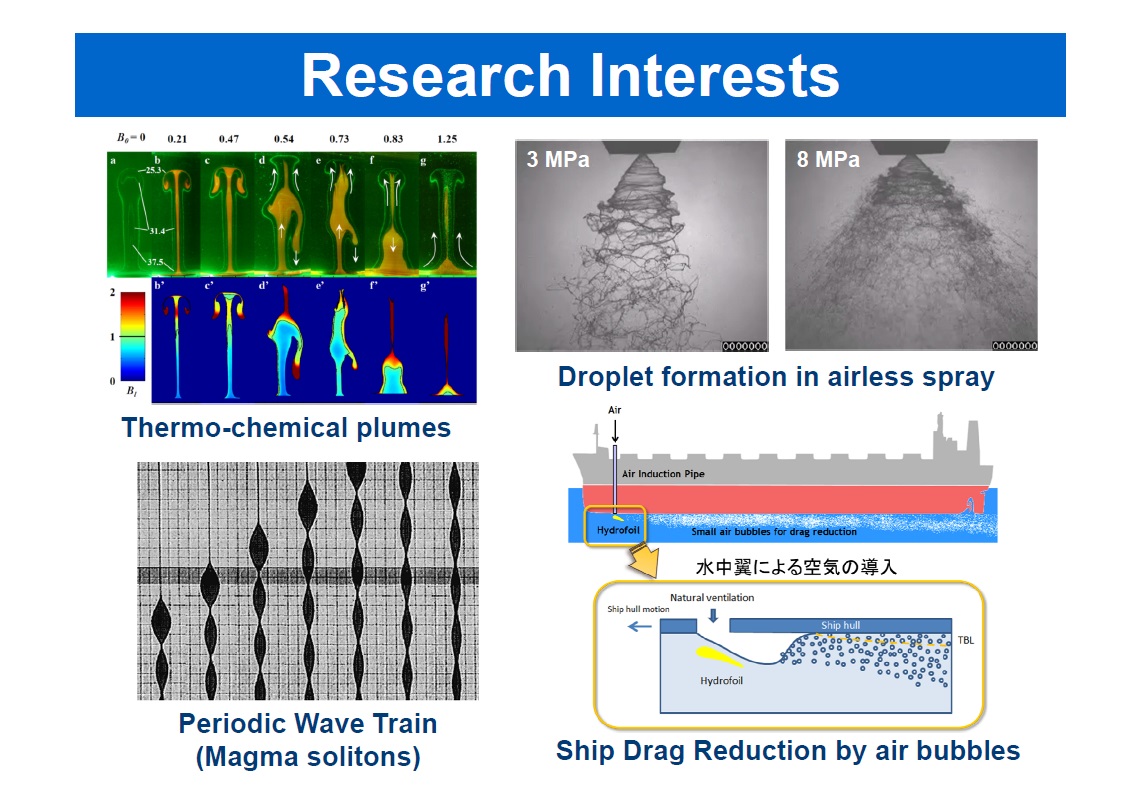• 気泡を用いた船舶抵抗低減技術の研究(翼型気泡発生装置の開発)/船舶塗装に関する実験(非ニュートン流体の微粒化現象)